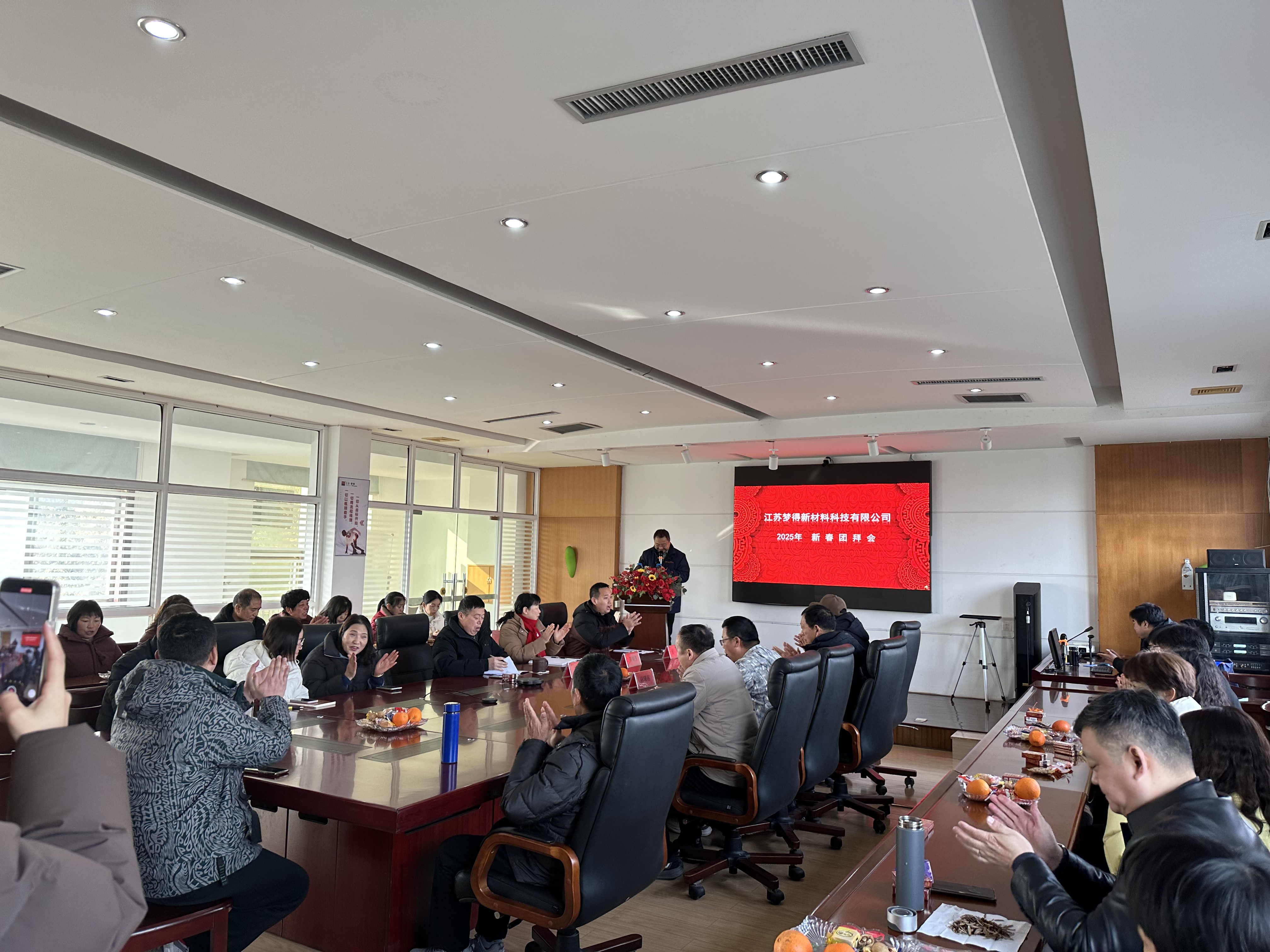 蛇年启新篇,万事俱更新。江苏梦得新材料科技有限公司于2025年2月5日上午,在公司三楼会议室召开了2025年新春团拜会。会议由公司任彬副总经理主持,大会在热情的掌声中,在每一个梦得人温暖祥和的笑容里拉开了帷幕。
