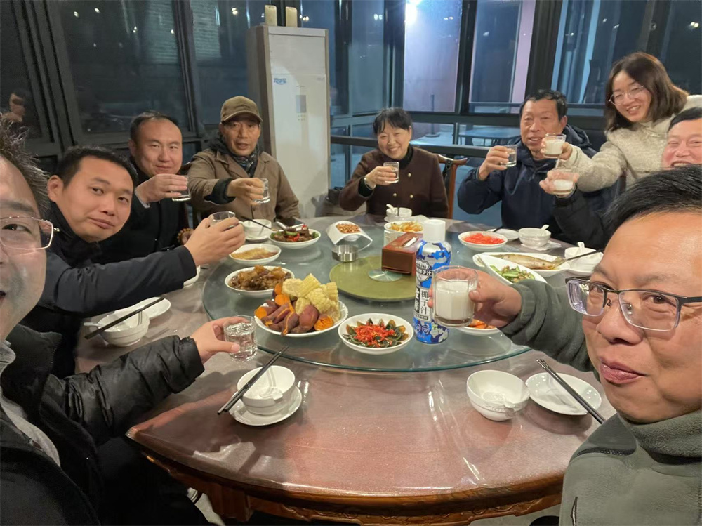 会议一直延续到晚上七点半,移步餐桌,继续热烈交流。此刻的茅山,霞光映衬,七星高照,山风轻拂,而餐桌上的气氛更是热烈融洽,仿佛整个世界都在为这场智慧的盛宴喝彩。