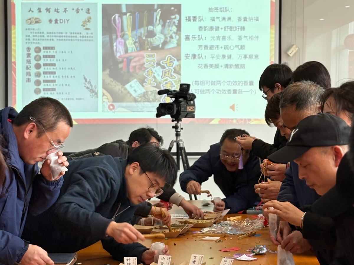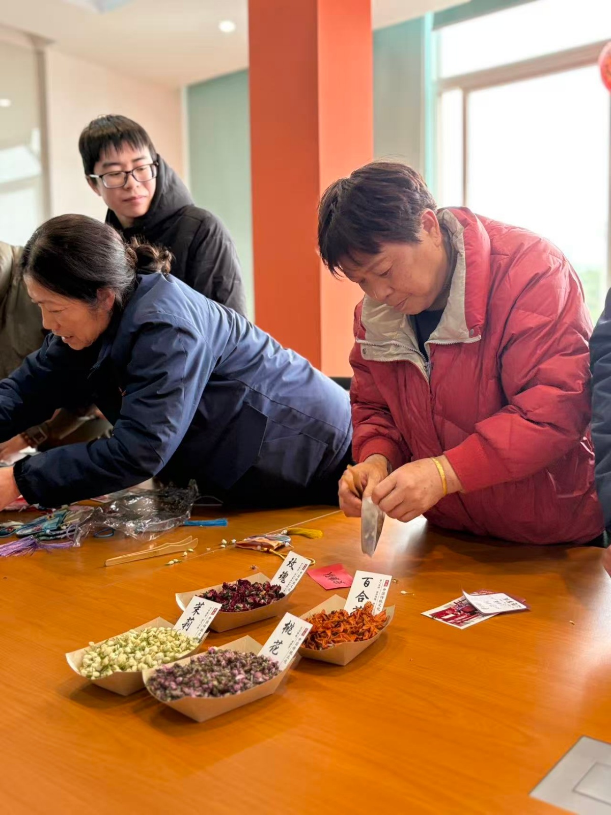 一囊藏香韵,暖意满心间。香囊DIY环节温情启幕,大家亲手甄选天然香材,细细装填、精心缝制,将平安顺遂、万事胜意的美好祈愿,一一封藏其中。