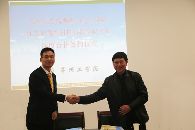 2016年11月14日,在常州工学院辽河路校区玉衡楼C520,江苏梦得新材料科技有限公司与常州工学院数理与化工学院就深度合作进行了签约仪式。