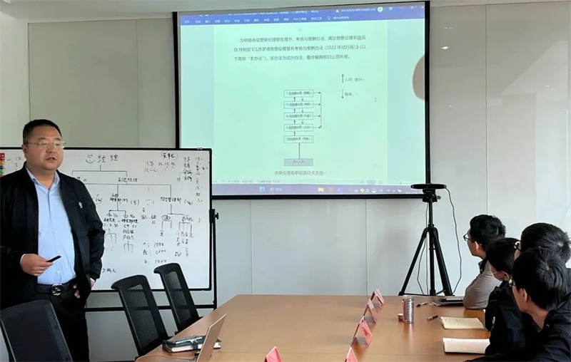 后续的课程中,公司任彬副总经理介绍了培训的相关流程,明确了培训的要求及任务,以及学员在培训中的注意事项。同时,讲解了公司的规章制度,现有的组织架构及管理工具的使用,让新学员能够明确自己岗位职责,清楚自己在公司组织架构中的条线定位,以及公司的员工行为规范。