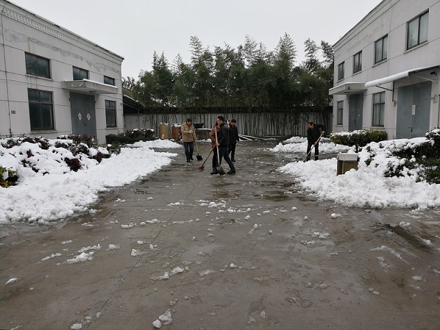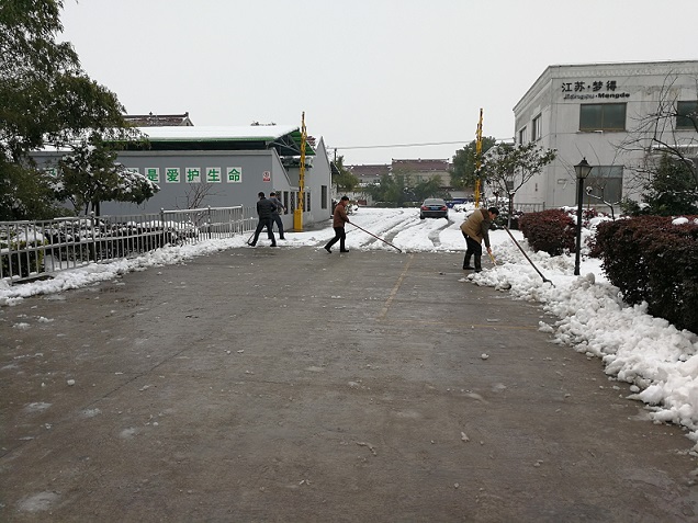 梦得员工积极自发清扫大雪,由江苏梦得新材料科技有限公司于2018.01.06整理发布。