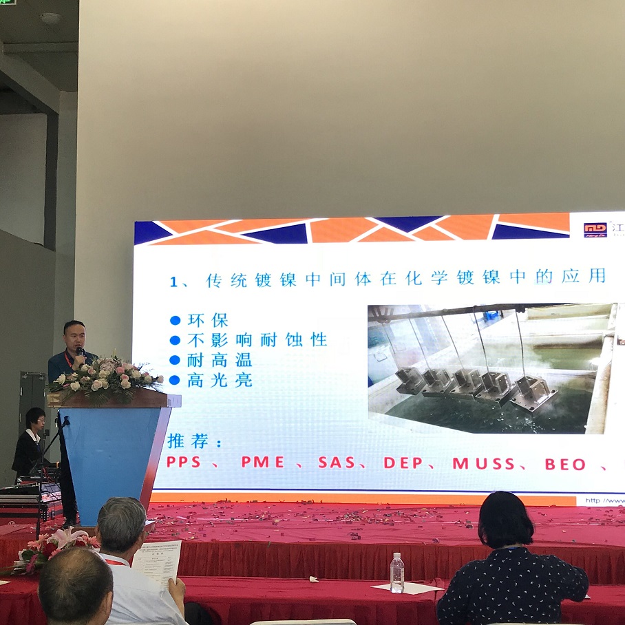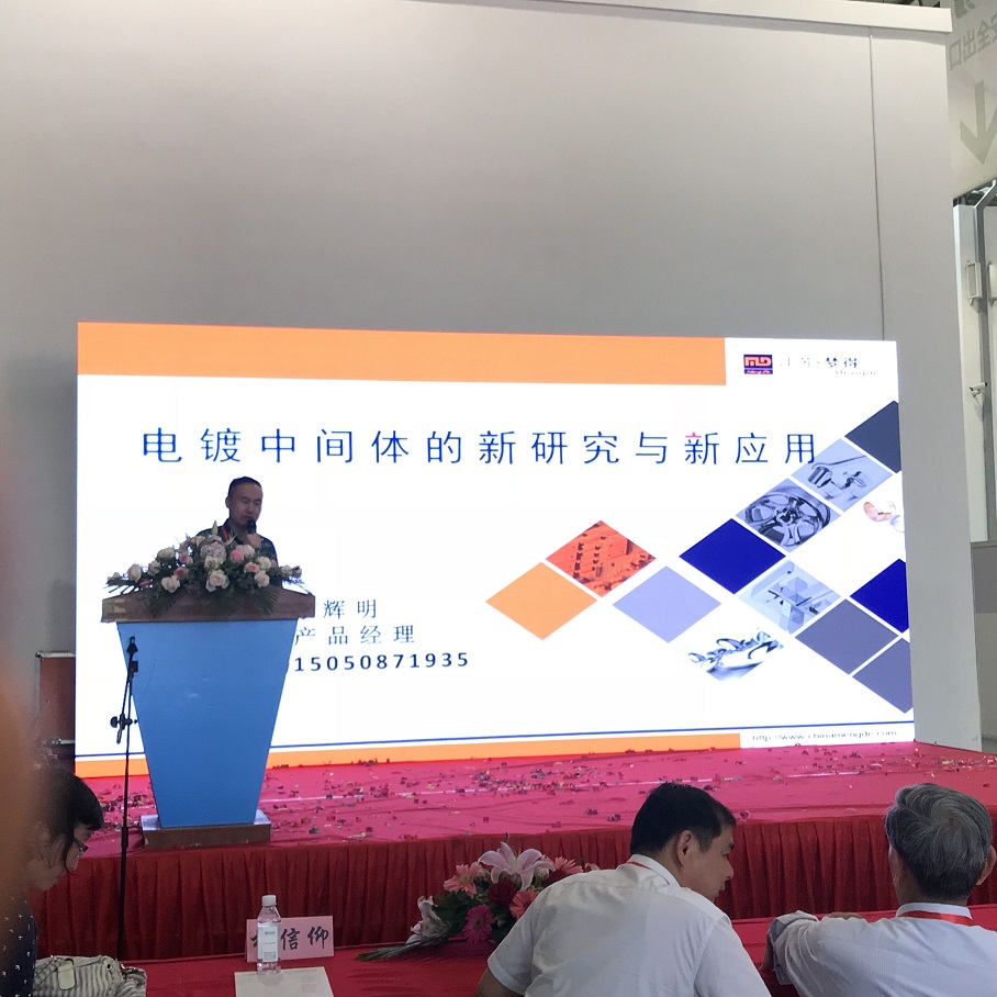 2018年5月8日,2018第二届环保新材料、新科技与发展高峰论坛在苏州广电会展中心圆满举行,此次论坛结合2017国际新材料技术与发展新趋势,依托行业热点新资讯,探讨构建以“绿色环保,资源整合”体系为支撑,诚信为基础、创新为常态、共赢为目的的发展新模式,共同探讨了企业绿色发展之路。公司产品经理方辉明先生受邀做了“电镀中间体的新研究与新应用”的主题报告,分享了传统电镀中间体在一些新型工艺里面的研究与应用,主要有六大方面,1、传统电镀镍中间体在化学镀镍里的应用2、传统电镀铜中间体在PCB镀铜的应用3、传统电镀铜中间体在凹版硬铜工艺的应用4、传统电镀铜中间体在蚀刻液提炼铜的应用5、传统电镀铜中间体在化学沉铜及抛光的应用6、传统电镀铜中间体在电解铜箔的应用。受到与会者的关注。