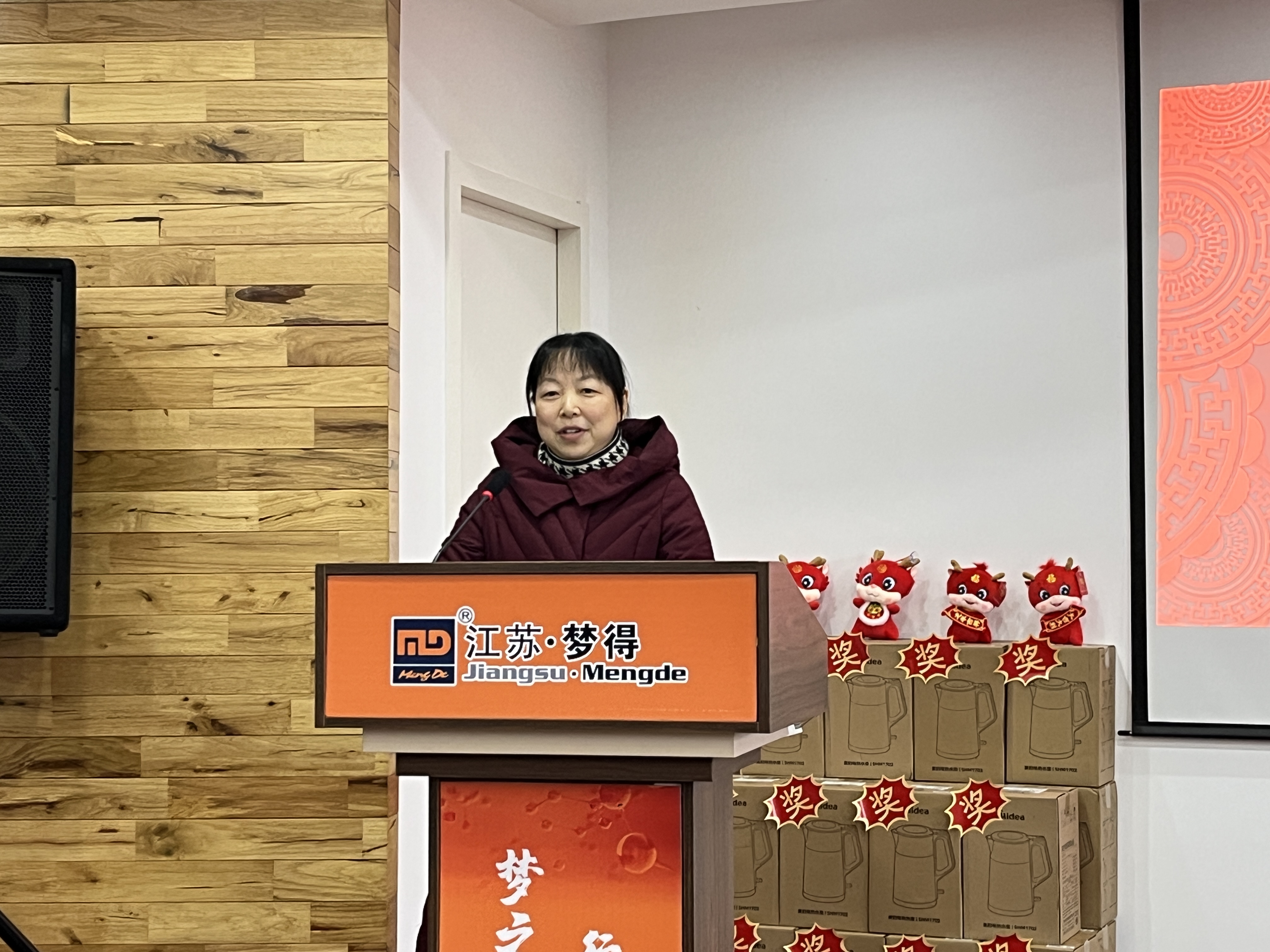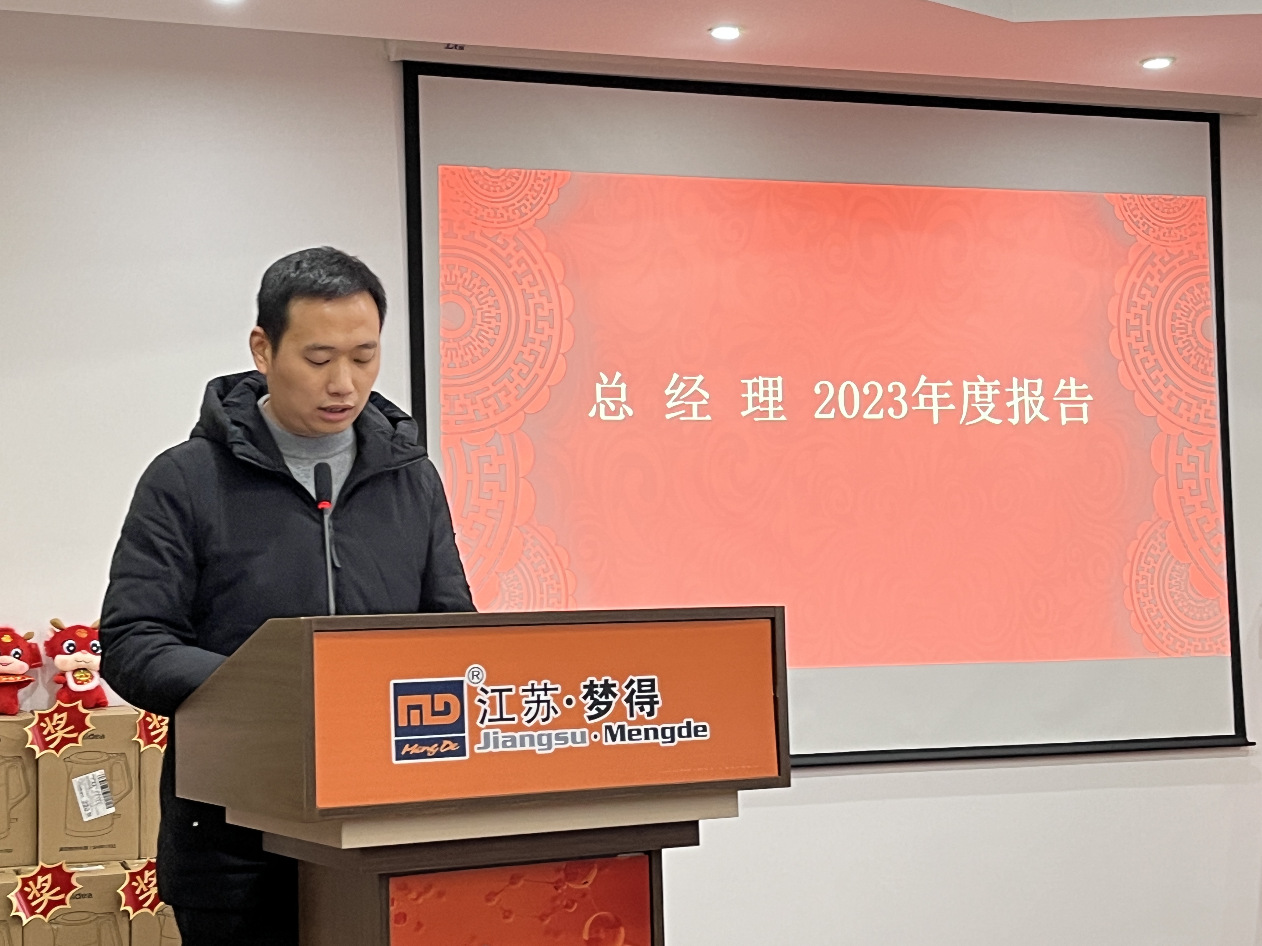 总经理杭康先生首先对全体员工的辛勤付出表示衷心的感谢,并表示回顾过去的一年,江苏梦得全体员工共同经历了许多挑战和困难,也收获了很多成长与进步。公司在各方面取得的令人瞩目的成绩,都离不开每一位梦得人的辛勤付出和默默坚守。希望新的一年,大家携手共进,继续前行,为实现公司的目标和愿景而不懈奋斗!