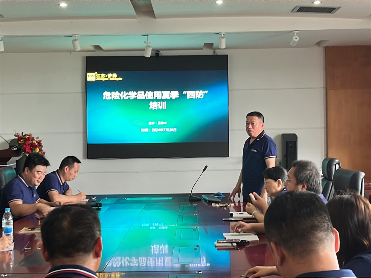 居安应思危,思则应有备,有备则无患。安全生产,关乎每个人的生命财产安全。随着夏季高温、高湿的来临,企业安全隐患会进一步增加。7月20日下午,江苏梦得新材料科技有限公司在总部三楼会议室召开了2024年危险化学品使用相关知识以及夏季“四防”知识培训。