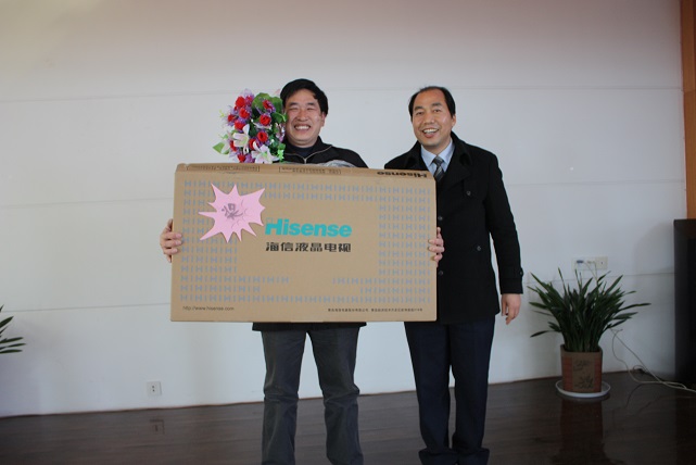 随后,大会现场的抽奖活动和同时进行的各个部门员工表演节目,现场气氛十分热烈!32寸LED电视机,洗衣机,取暖器,吸尘器,烤箱,自行车,电磁炉,床上四件套等大奖均被幸运员工抽取,并由杭总,贡总亲自颁发!所有与会员工都是满载而归,大会在一片欢快的氛围中结束。